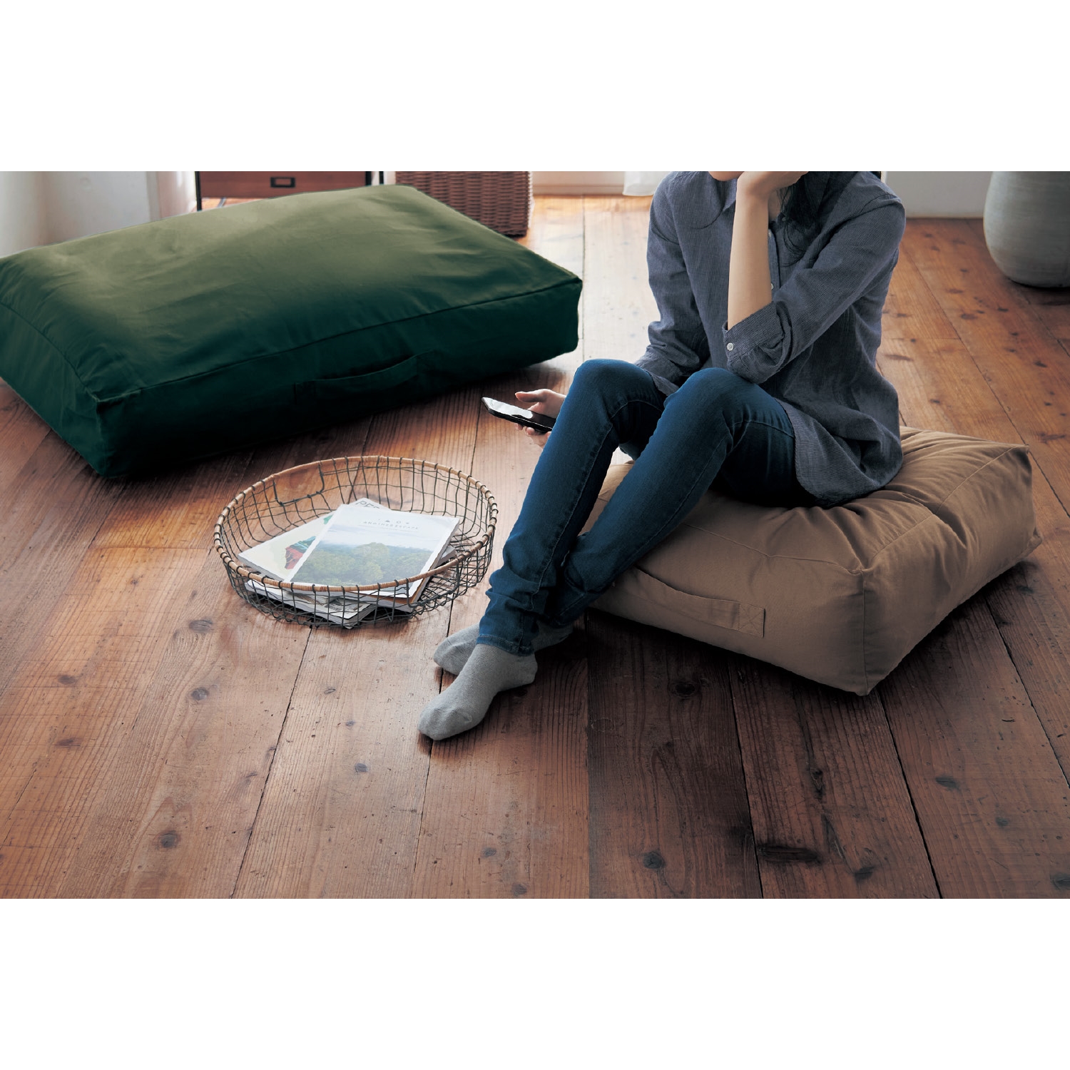 この画像はファスナーが見えていますが、裏返すとファスナーが隠れるので、まさにローソファのような感覚です。